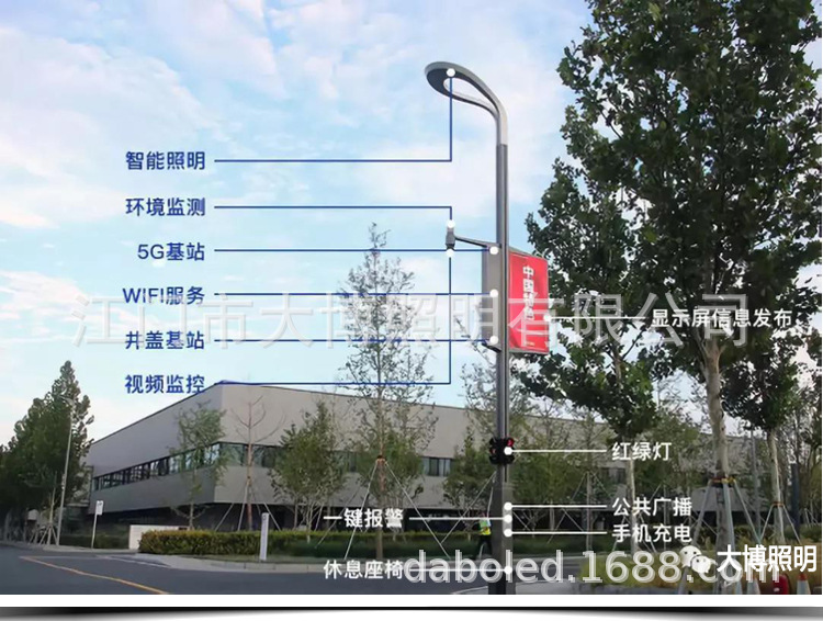 智能路燈 廠家特色WIFI充電樁監控廣告屏多功能LED智慧路燈