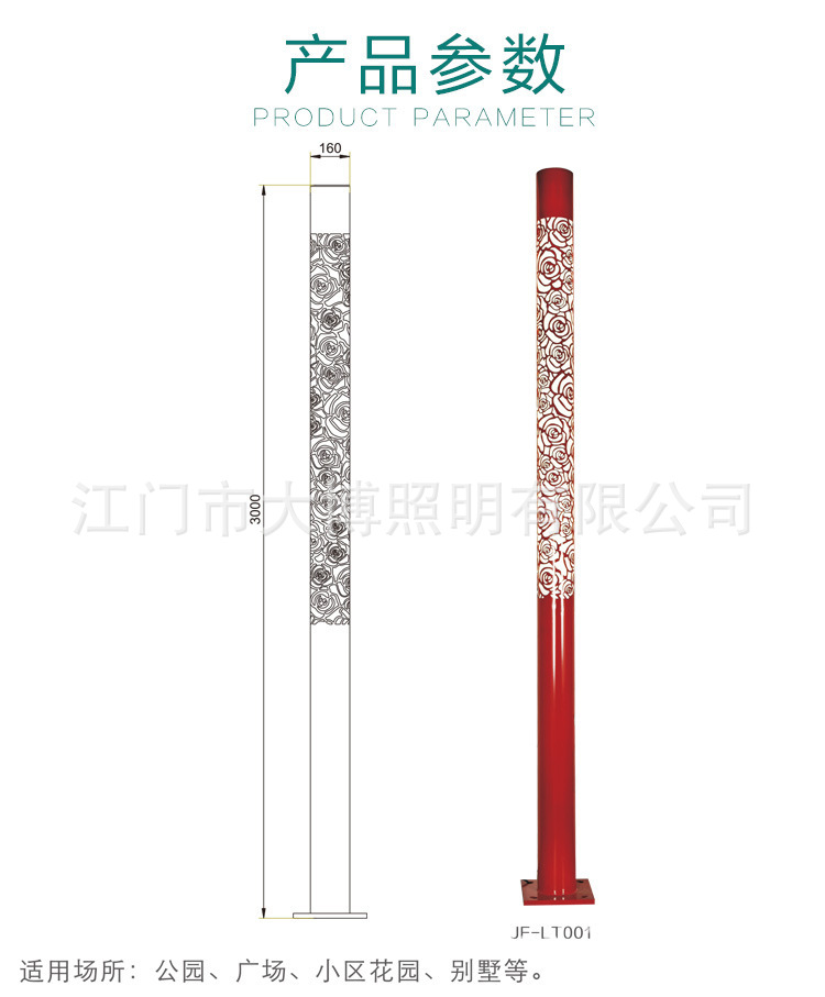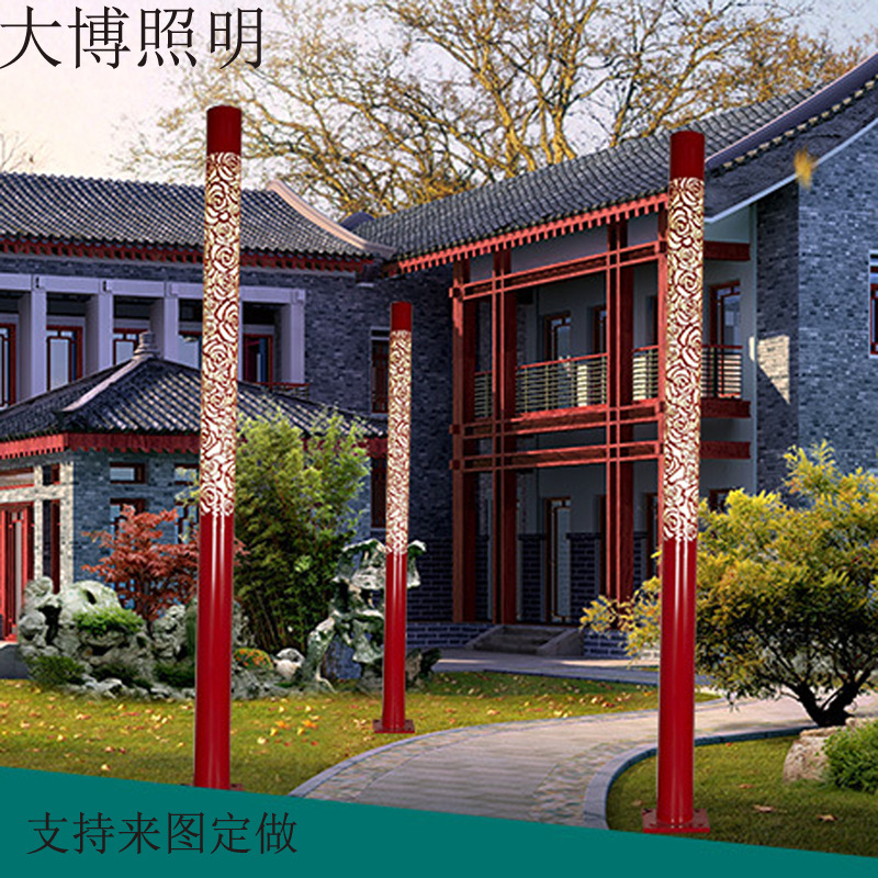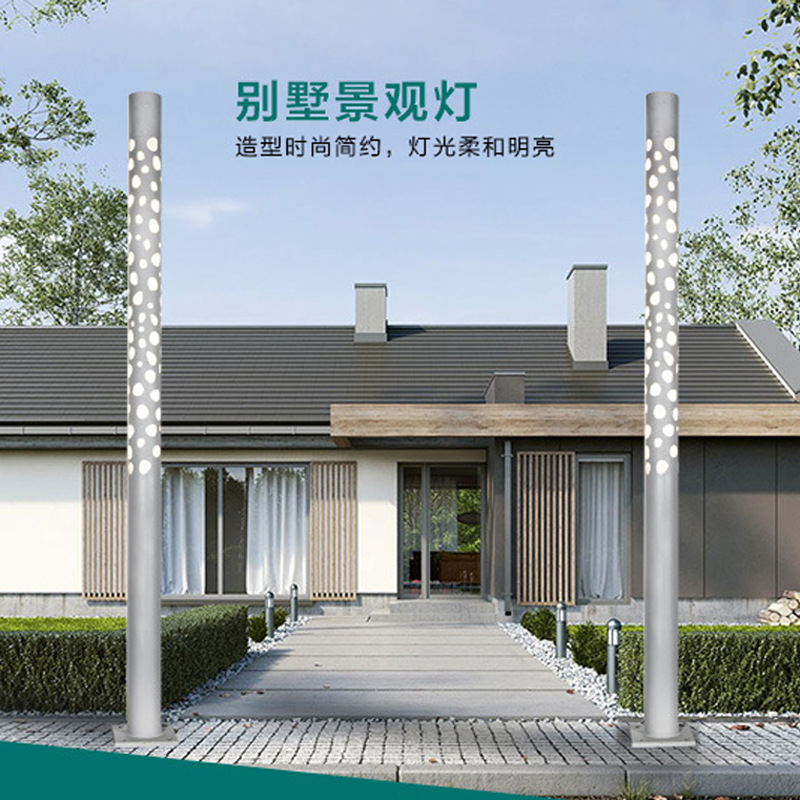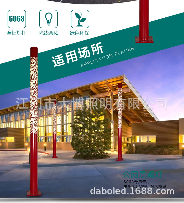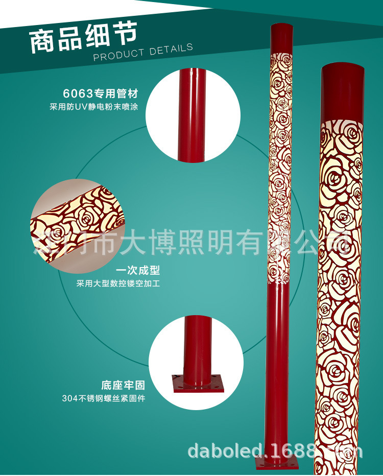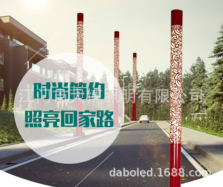 LED景觀燈鋁制圓形鏤空玫瑰花紋小區花園燈特色景觀燈柱批發
