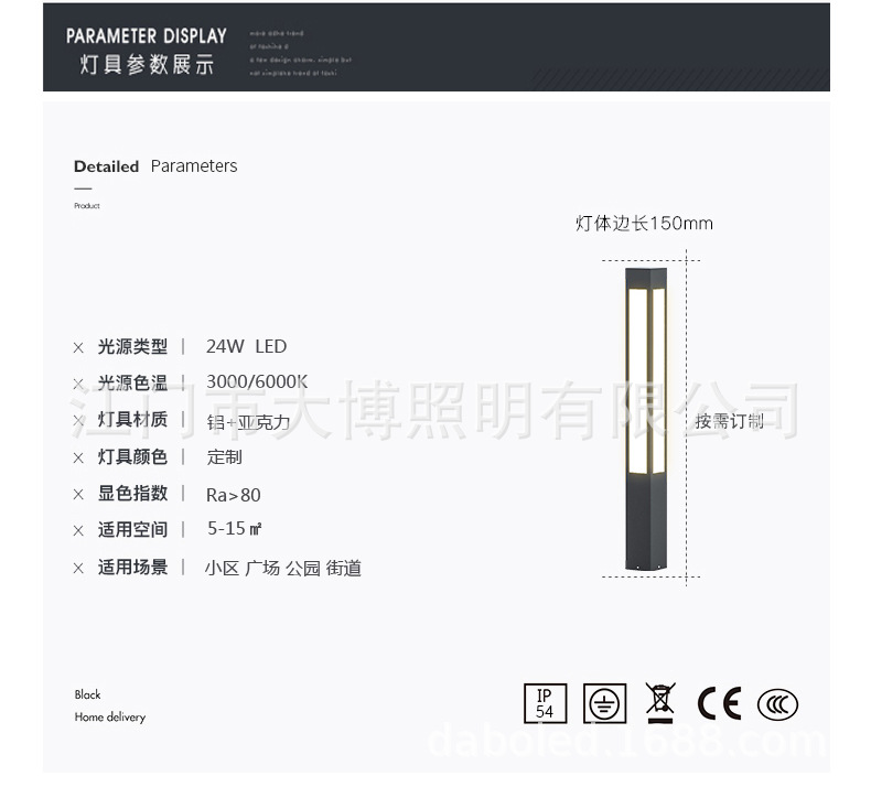 鋁制方形景觀燈戶外道路照明景觀燈柱特色簡約現代LED庭院燈
