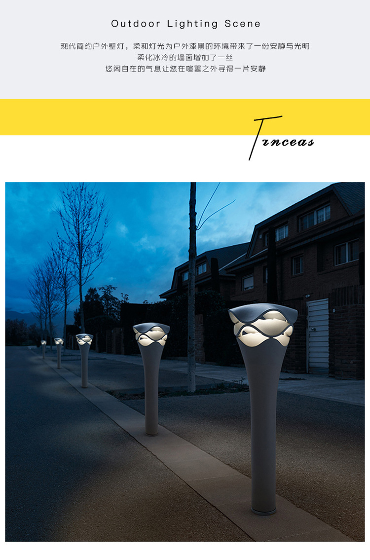 LED草坪燈波浪形特色現代簡約造型藝術鋁制防水花園草地柱頭燈
