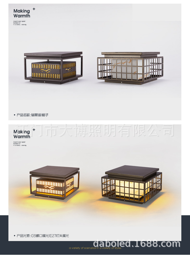 定制飛雁款戶外庭院燈不銹鋼新中式特色LED柱頭燈門頭裝飾燈