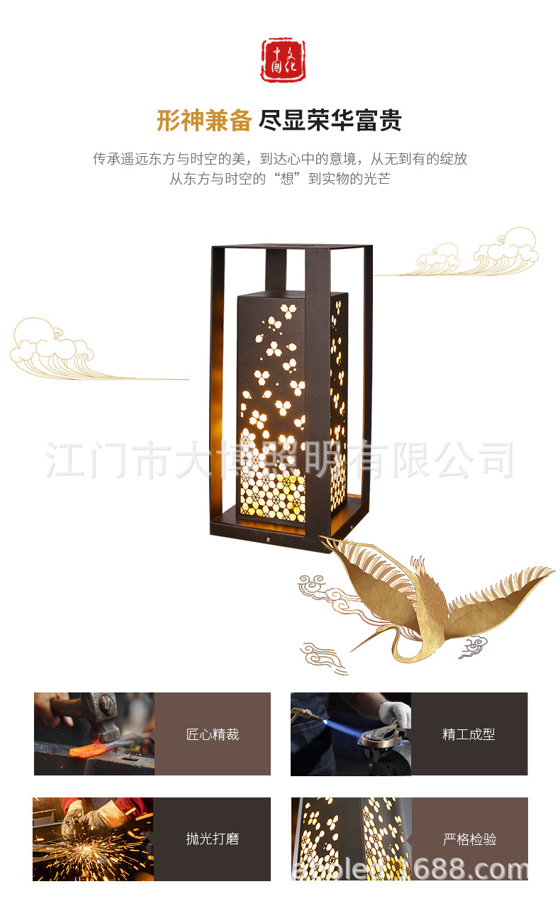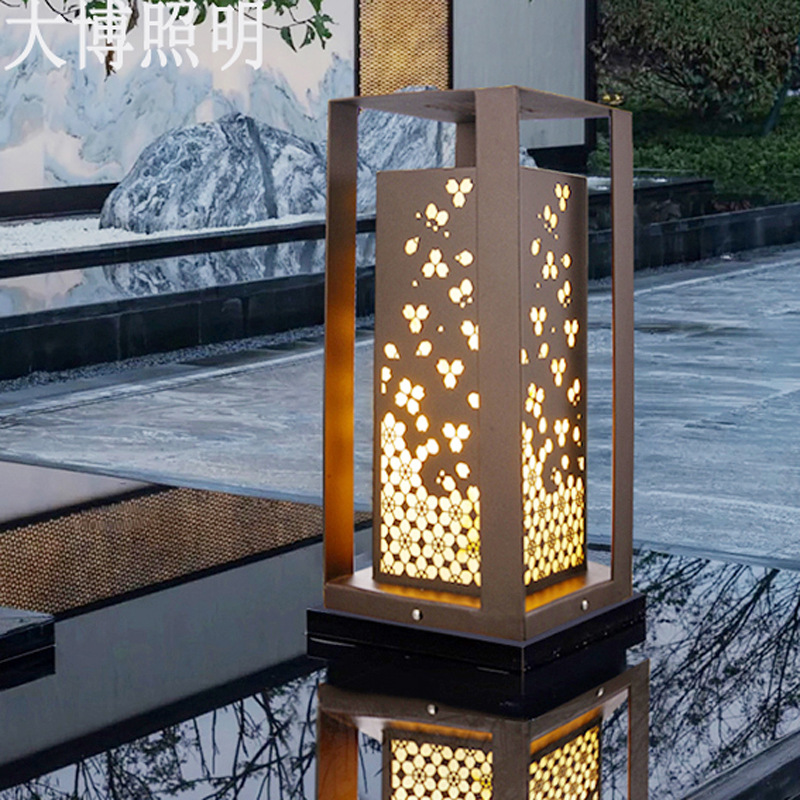 中式柱頭燈古典花韻落地式特色圍墻燈小區花園別墅LED草坪燈批發
